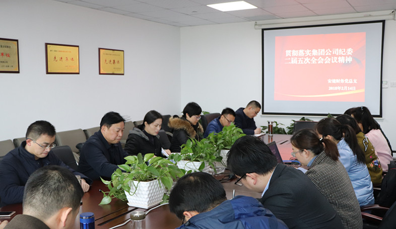 2月14日上午,安建财务公司召开专题会议, 学习宣传贯彻集团公司纪委二届五次全会精神。会议由党总支书记、副总经理潘琳主持,公司全体党员参加了会议。