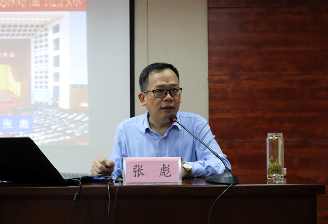 张彪以《全面把握习近平新时代中国特色社会主义思想深刻内涵与任务要求》为主题,从深刻认识习近平新时代中国特色社会主义思想的历史地位和重大意义,习近平新时代中国特色社会主义思想的深刻内涵,全面把握新时代思想切实转化为推动工作的新气象、新作为等三个方面进行了深入浅出的分析和讲解。张彪教授指出,党的十九大立足时代和全局的高度,着眼中国特色社会主义事业长远发展,郑重地提出了习近平新时代中国特色社会主义思想,并把这一思想确立为我们党的指导思想,写入党章,实现了党的指导思想的又一次与时俱进。习近平新时代中国特色社会主义思想开辟了马克思主义新境界、开辟了中国特色社会主义新境界、开辟了党治国理政新境界、开辟了管党治党新境界。他强调,学习习近平新时代中国特色社会主义思想不仅要入脑入心,更要在学懂弄通做实上下功夫,切实用党的十九大精神武装头脑、指导实践、推动工作。
