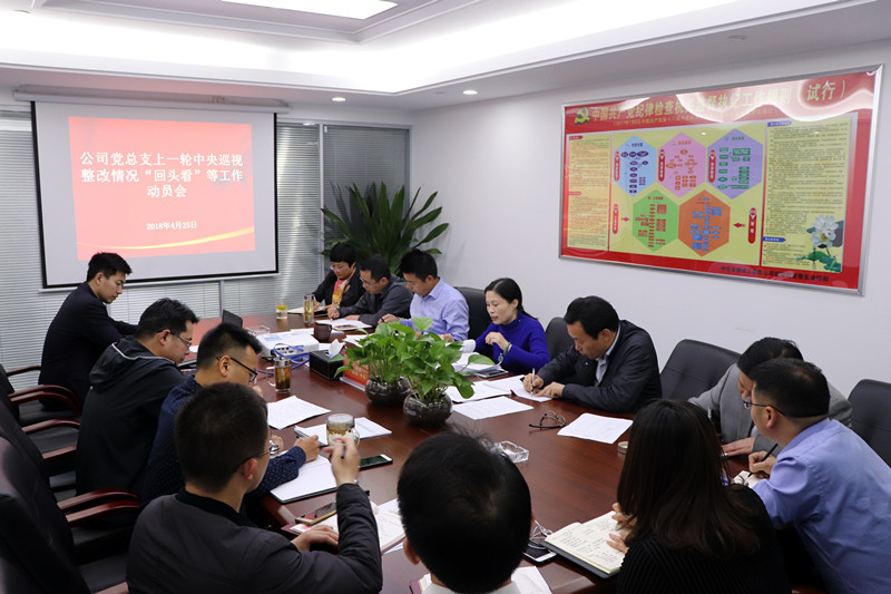 4月25日,安建财务党总支根据集团公司党委的统一部署,召开公司上一轮中央巡视整改情况“回头看”工作动员会。财务公司领导,各部门负责人,所属各党支部书记、支部委员等参加了会议。会议由公司党总支书记、副总经理潘琳主持。