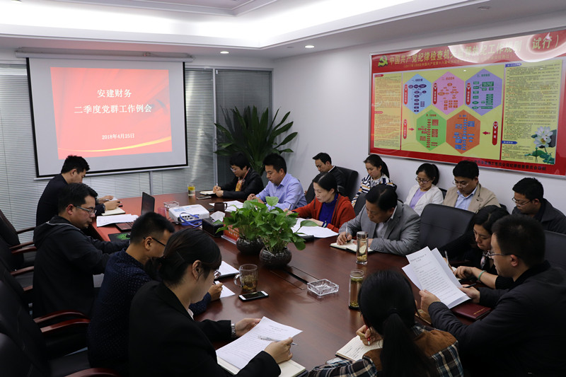 4月25日,安建财务公司党总支召开二季度党群工作例会,公司党总支书记、副总经理潘琳主持会议。副总经理、纪检委员于忠山,公司党群部门相关人员,所属各党支部书记、支部委员及各工会小组长参加了会议。