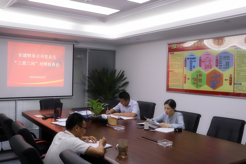 8月23日下午,安建财务公司党总支召开“三查三问”对照检查会议,公司党员领导班子成员参加,党总支书记潘琳主持会议。