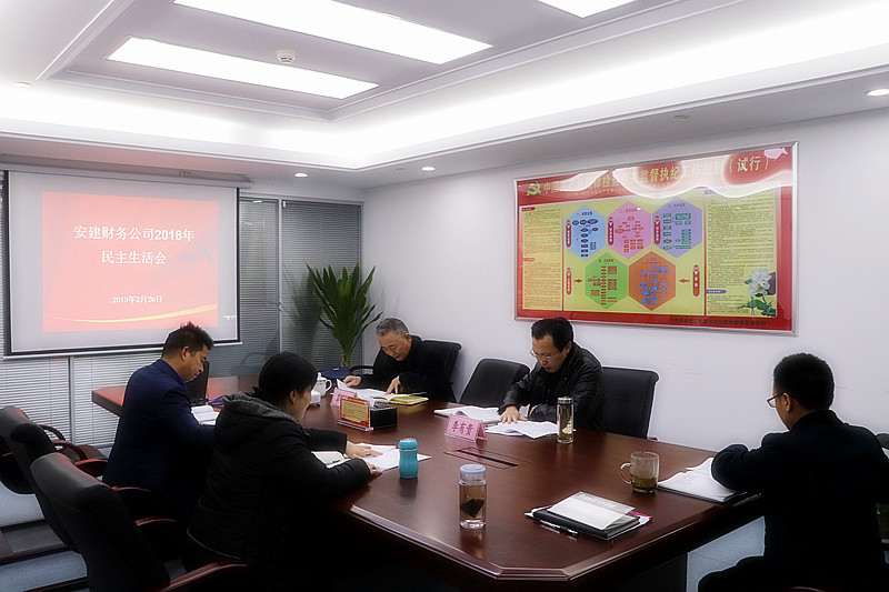 2月26日下午,安建财务公司党总支召开2018年度党员领导人员民主生活会。公司党总支书记、副总经理潘琳同志主持会议,公司领导班子成员参加了会议。建工控股副总经理李有贵,纪委副书记、纪检监察室主任龚志酬到会指导。