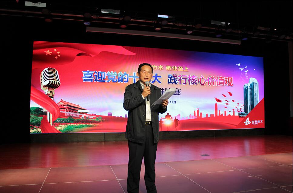 金秋时节,硕果盈枝。10月12日下午,集团公司“喜迎党的十九大,践行核心价值观”主题演讲比赛决赛在安建大厦三楼会议室隆重举行。来自集团所属各单位,从预赛闯关而来的16名参赛选手展开了一场精彩激烈的角逐,送上了一场精彩纷呈的视听盛宴。