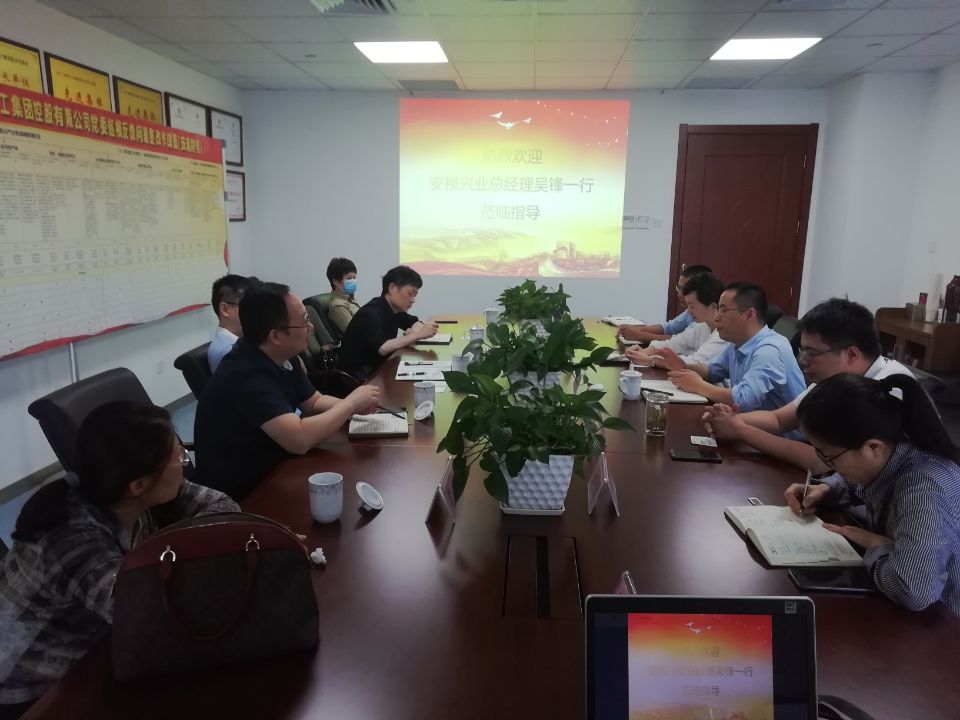 6月23日,安徽安粮兴业有限公司总经理吴锋携安徽安粮小额贷款有限公司总经理助理明文纲等一行到访,安建小贷总经理赵渊明及相关人员参加交流会谈。
